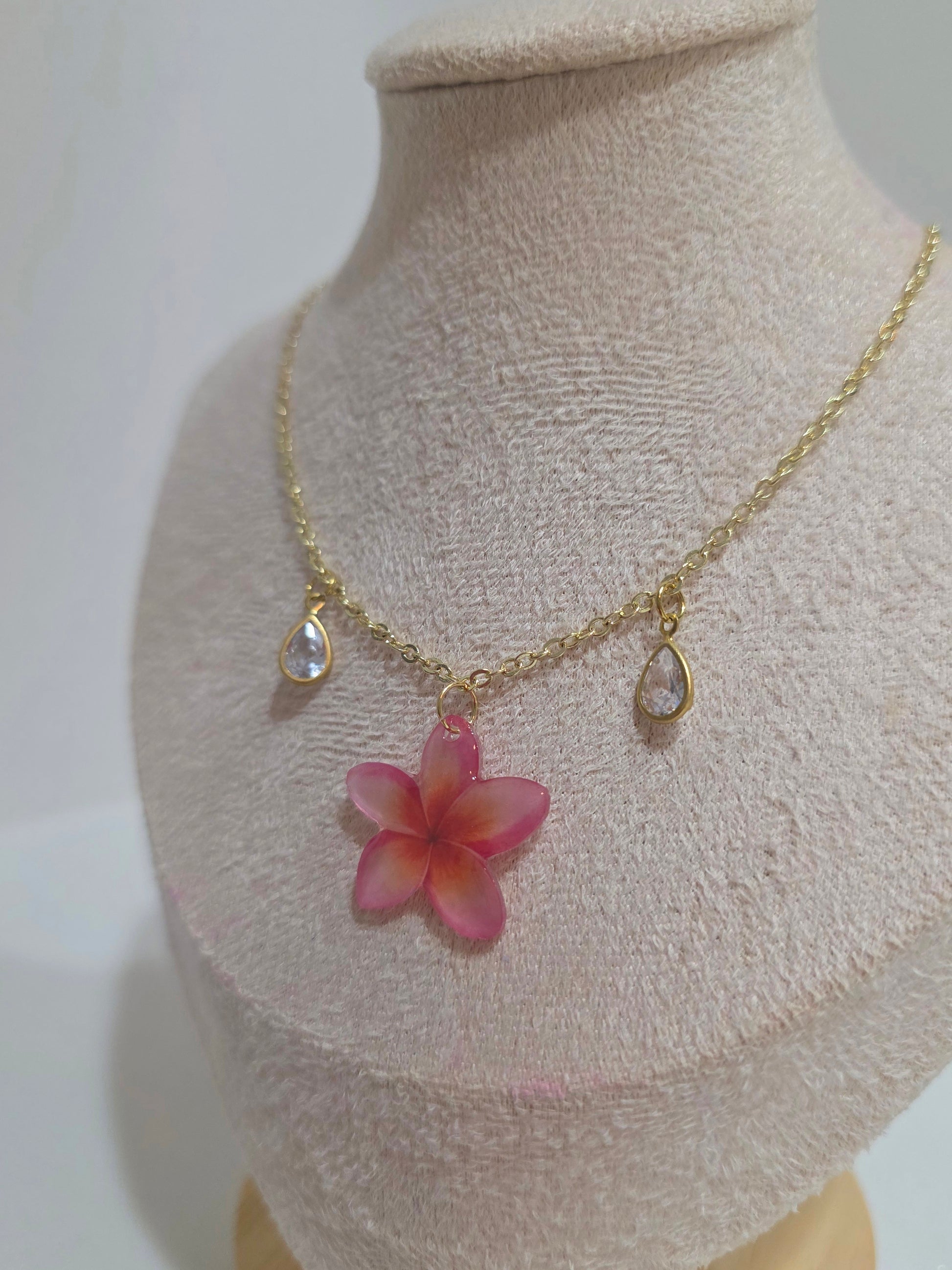 Pink Plumeria Charm 18k Gold plated Necklace