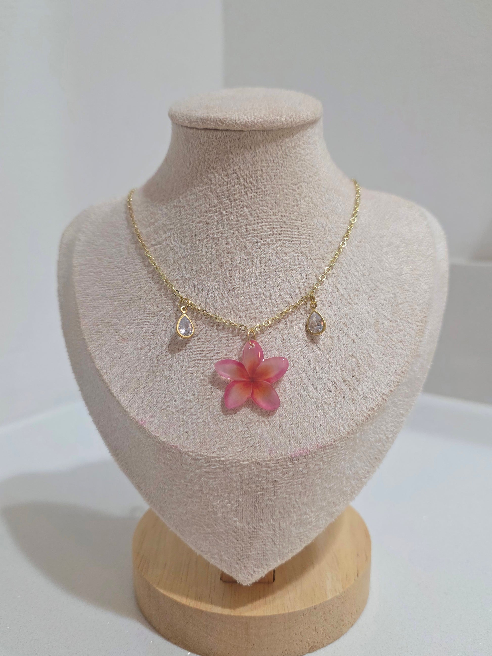 This delicate Plumeria charm necklace can add a elegant touch to your outfit and be a perfect addition to your spring looks.
